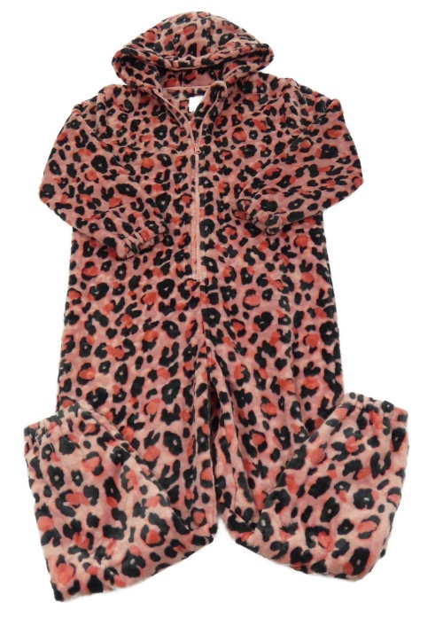 Ružová chlpatá kombinéza s leopardím vzorom a kapucňou Next