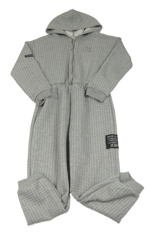 Sivá melírovaná kostkovaná/prošívaná tepláková kombinéza s logom a nášivkou a kapucňou RIVER ISLAND