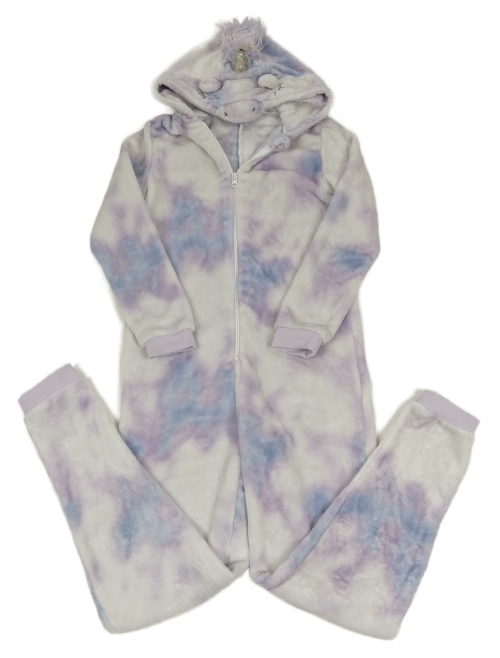 Fialovo-modro-biela batikovaná plyšová kombinéza s kapucí - jednorožec Vertbaudet