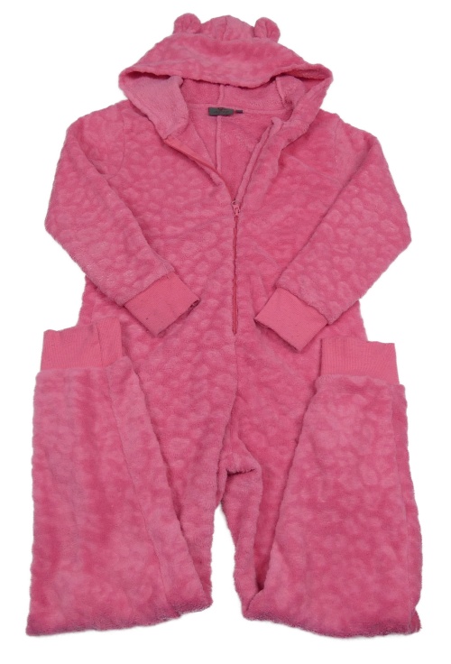 Ružová chlpatá kombinéza s kapucňou