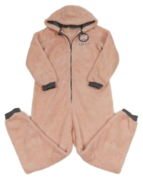 Svetloružová chlpatá kombinéza s labuťou a kapucňou Pepperts