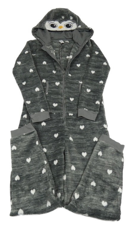 Tmavosivá melírovaná plyšová kombinéza so srdiečkami a kapucí - sovička YIGGA