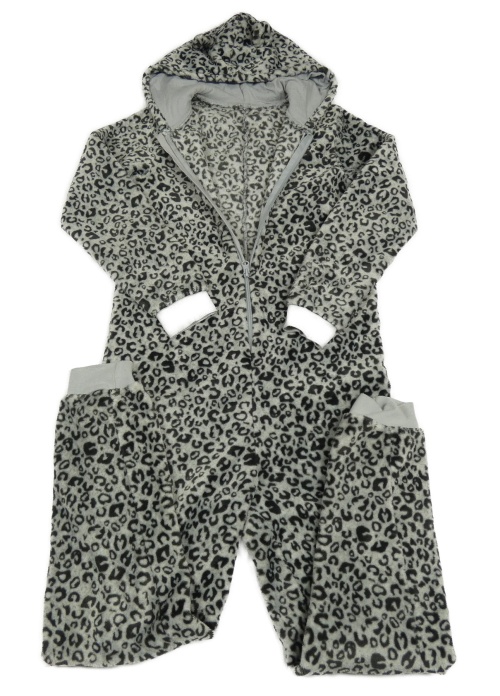 Sivo-čierna vzorovaná chlpatá kombinéza s kapucňou