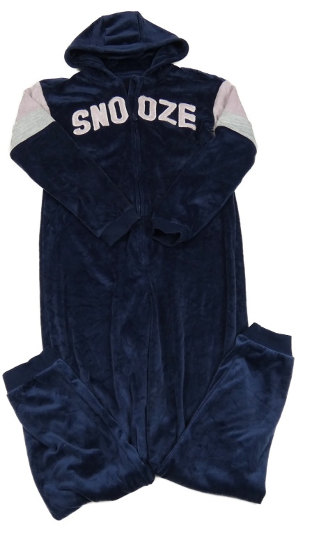 Tmavomodro-světlerůžovo/šedá plyšová kombinéza s nápisom a kapucňou George