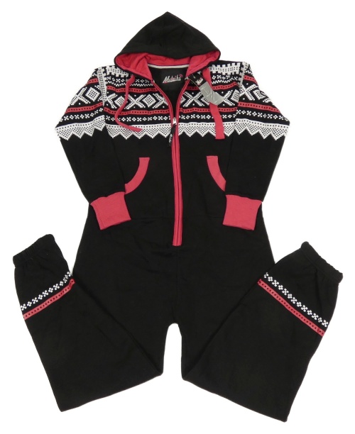 Nové - Čierno-bielo-ružová tepláková kombinéza so vzorom a kapucňou