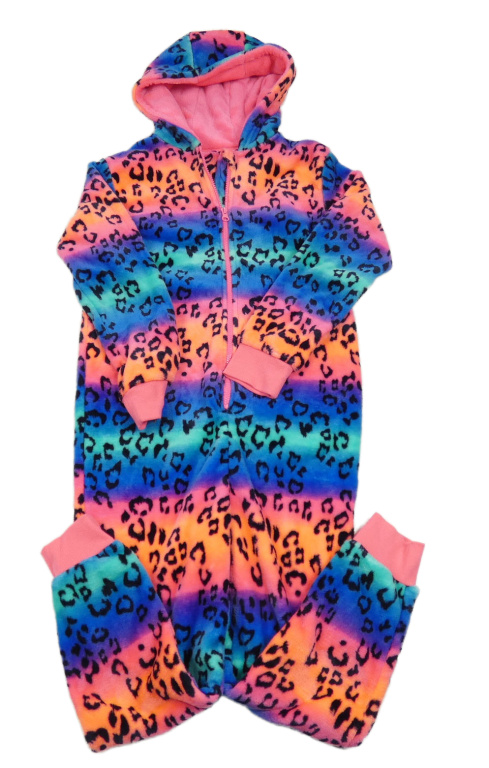 Farebná chlpatá kombinéza s leopardím vzorom a kapucňou St. Bernard