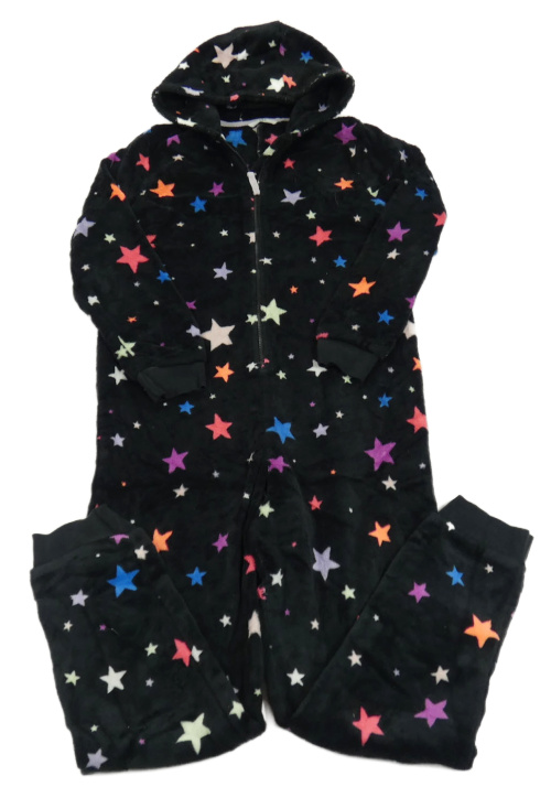Čierna plyšová kombinéza s farebnými hviezdičkami a kapucňou M&S