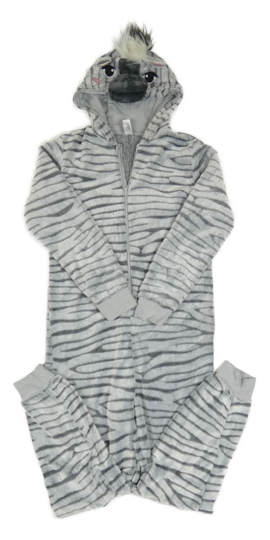 Sivá plyšová rebrovaná kombinéza s kapucí - zebra C&A