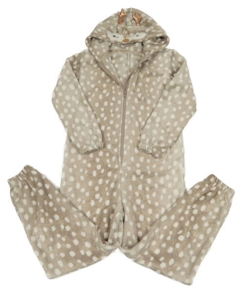 Béžová bodkovaná á trblietavá chlpatá kombinéza s kapucí - srnka