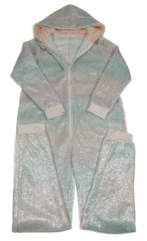 Mátovo-svetloružová trblietavá plyšová kombinéza s kapucňou Dreamer
