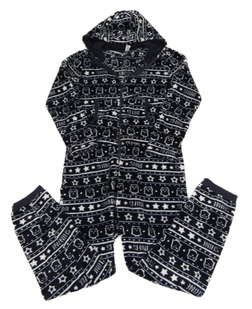 • Tmavomodro-biela vzorovaná plyšová kombinéza s kapucňou Yigga