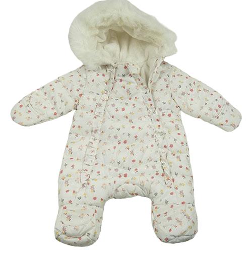 Biela kvetovaná šušťáková zimná kombinéza s kapucňou Primark