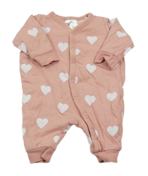Pudrová zateplená kombinéza s bielými srdiečkami H&M