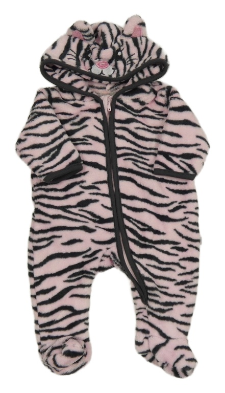 Svetloružová -sivá vzorovaná chlpatá kombinéza s kapucňou Smile