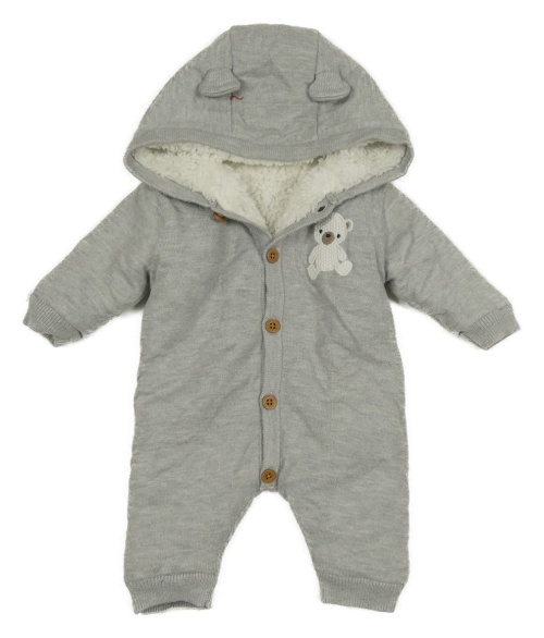 • Sivá melírovaná úpletová zateplená kombinéza s medvedíkom a kapucňou s uškami little Nutmeg