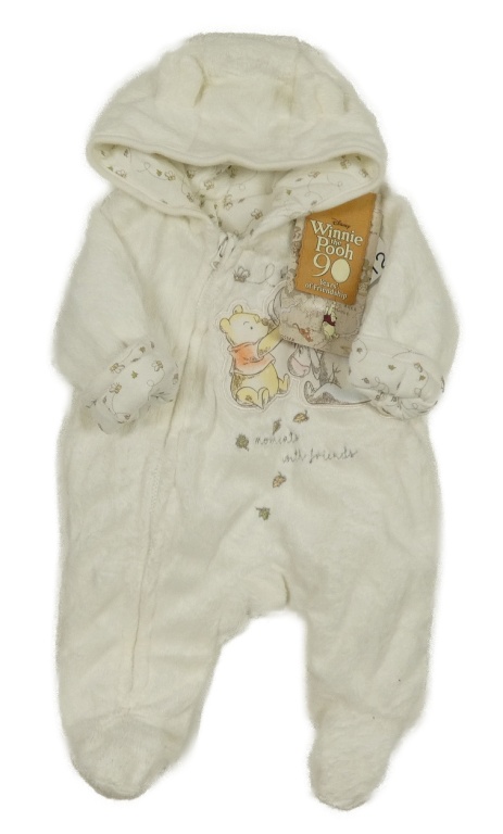 Nové - Biela chlpatá zateplená kombinéza s medvídkem Pú a kapucňou Disney