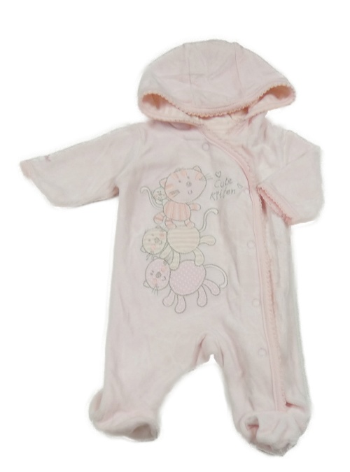 Svetloružová zamatová kombinéza s kočičkami a kapucňou