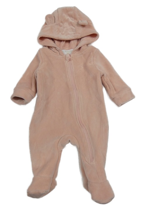 Ružová rebrovaná plyšová kombinéza s kapucňou