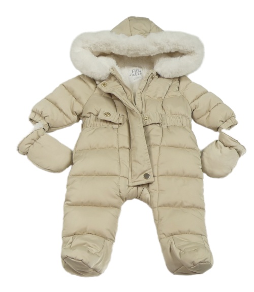 Béžová šušťáková zimná kombinéza s kapucí + rukavice F&F