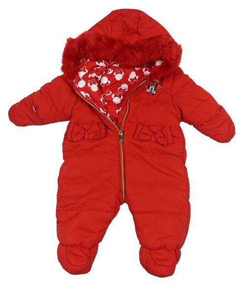Červená šušťáková zimná kombinéza s Minnie a kapucňou George