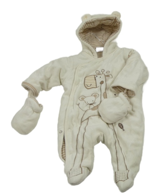 • Smotanová zamatová zateplená kombinéza so zvieratkami a kapucí + rukavice