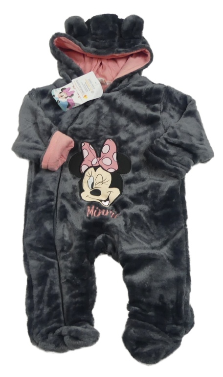 Nové - Tmavosivá chlpatá podšitá kombinéza s Minnie a kapucňou Disney