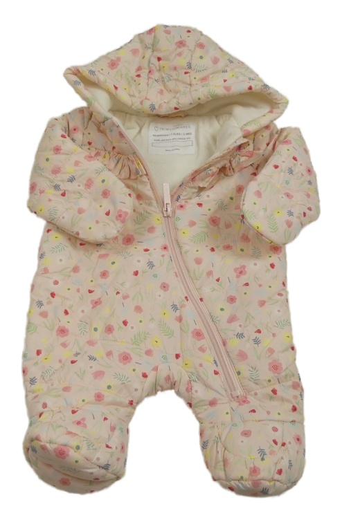 Svetloružová kvetovaná šušťáková ľahká zateplená kombinéza s kapucňou Primark