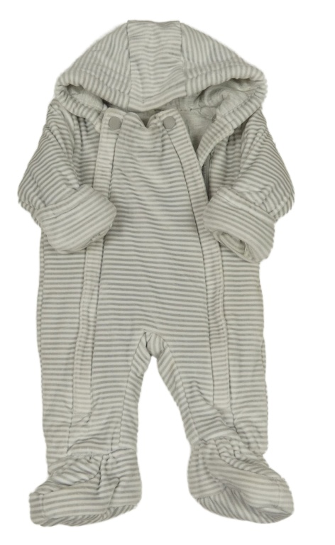 Bielo-sivá šušťáková pruhovaná zamatová zateplená kombinéza s kapucňou M&S