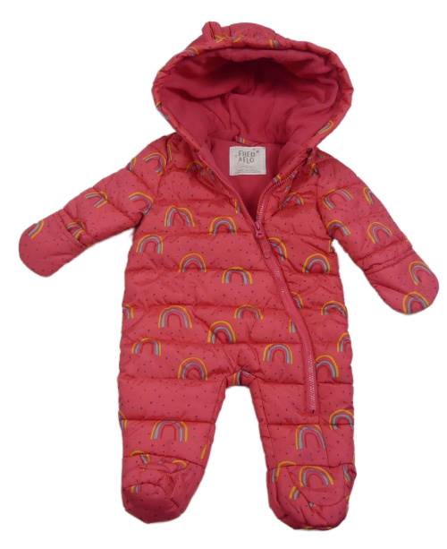 Malinová bodkovaná á šušťáková zimná kombinéza s duhami a kapucňou F&F