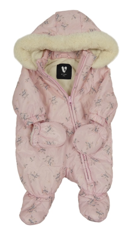 Svetloružová šušťáková zimná kombinéza s kvietkami a kapucí + rukavice V by Very