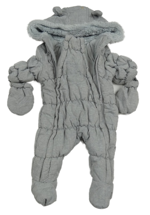 • Sivá melírovaná šušťáková zimná kombinéza s kapucí + rukavice Mothercare