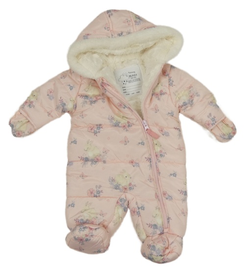 Svetloružová šušťáková zimná kombinéza s králikmi a kapucňou Nutmeg