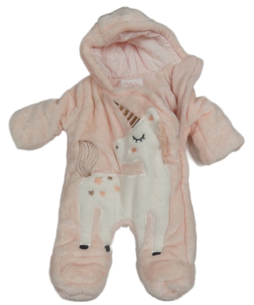 Svetloružová plyšová zateplená kombinéza s jednorožcom a kapucňou F&F
