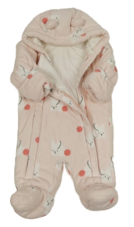 Svetloružová plyšová zateplená kombinéza s králíčky a kapucňou M&S