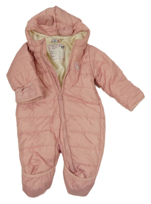 Ružová šušťáková prešívaná zimná kombinéza s kapucňou