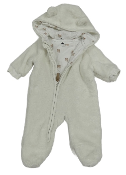 Biela chlpatá podšitá kombinéza s kapucňou F&F