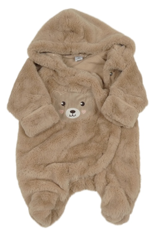 Hnedá kožušinová podšitá kombinéza s medvěďom a kapucňou Dopodopo