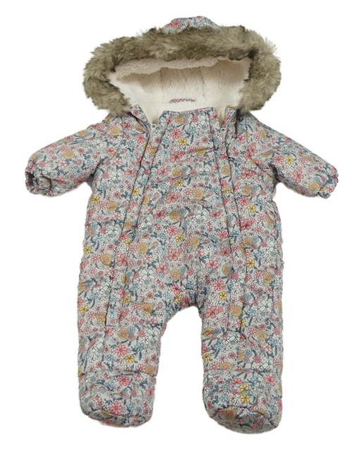 Svetlosivá melírovaná kvetovaná šušťáková zimná kombinéza s kapucňou s kožešinou F&F
