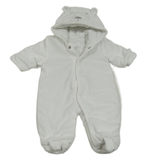 • Biela plyšová zateplená kombinéza s -kapucí medvěď Next