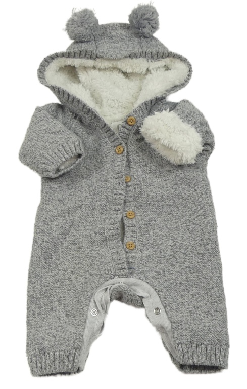 • Sivá melírovaná pletená zateplená kombinéza s kapucňou s bambulemi F&F