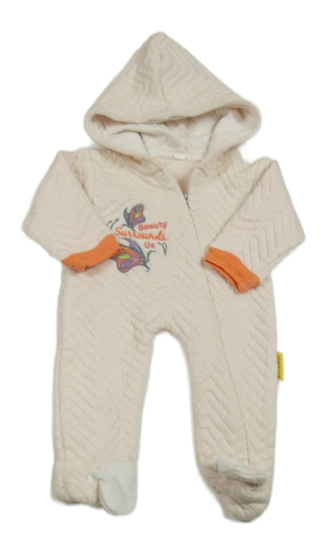 Svetlobéžová prešívaná tepláková kombinéza s motýly a kapucňou