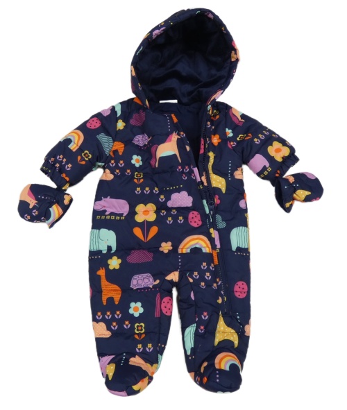 Nové - Tmavomodrá šušťáková zimná kombinéza so zvieratkami s kapucí + rukavice Next