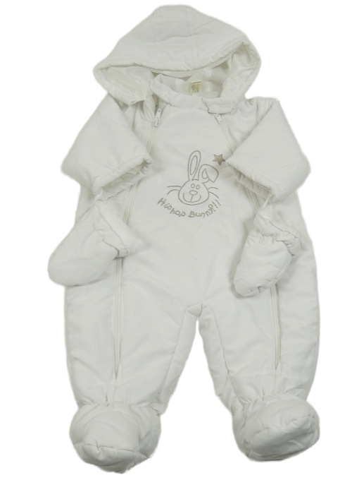 • Biela šušťáková zimná kombinéza so zajačikom a kapucí + rukavice Tiny Ted