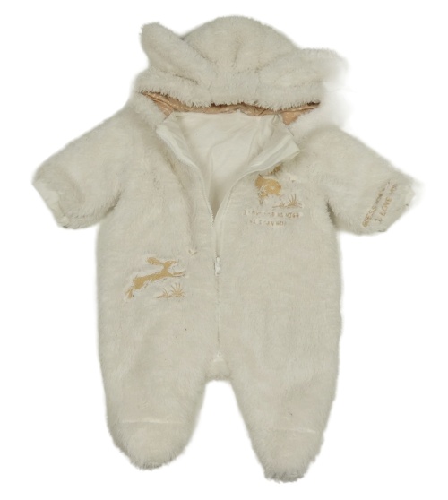 Biela chlpatá zateplená kombinéza s králíčky a kapucňou TU