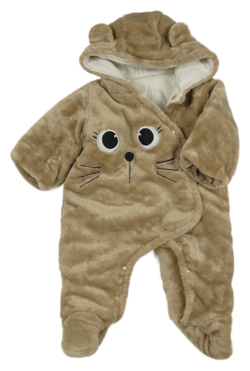 • Béžová chlpatá zateplená kombinéza s čumáčkem a kapucňou