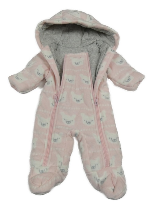 Svetloružová fleecová zateplená kombinéza s medvedíkmi a kapucňou M&S