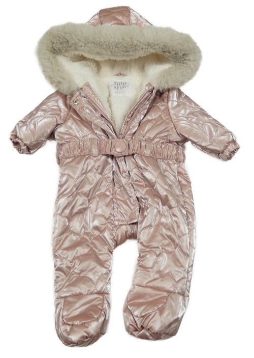 Ružová prešívaná metalická šušťáková zimná kombinéza s kapucňou F&F