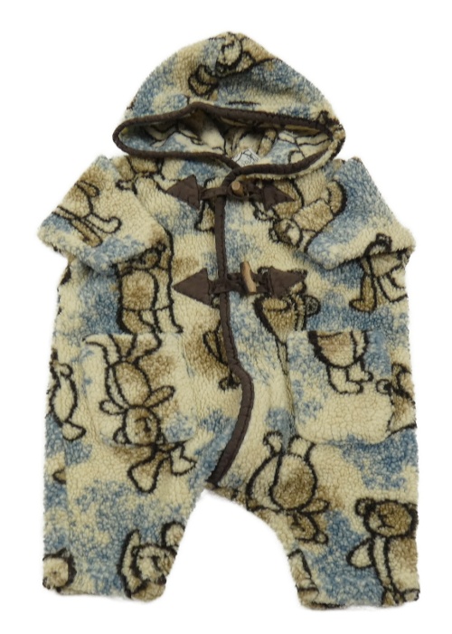 • Smetanovo-modro-hnedá huňatá kombinéza s medvedíkmi a kapucňou H&M