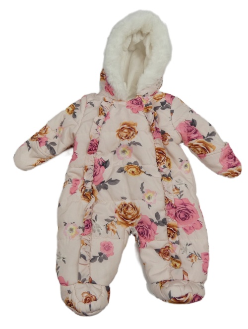 Ružová kvetovaná šušťáková zimná kombinéza s kapucňou George