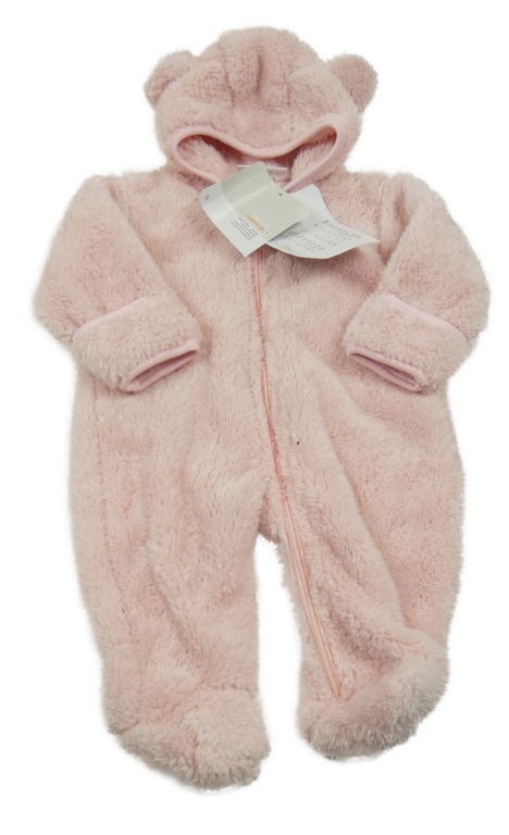 Nové - svetloružová chlpatá kombinéza s kapucňou Ergee